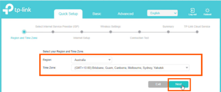 Note: Once logged in, navigate to the Advanced tab. If you're stuck in the Quick Setup tab, just put the region and time zone first, then hit Next. Then you can switch to the Advanced tab.