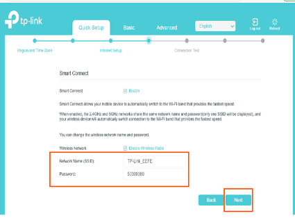 - On this screen you can define your Home Wi-Fi network name and password. Click Next if you are OK with default ones.