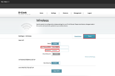 Change the Network Name (SSID) field and/or Password then Click Save.