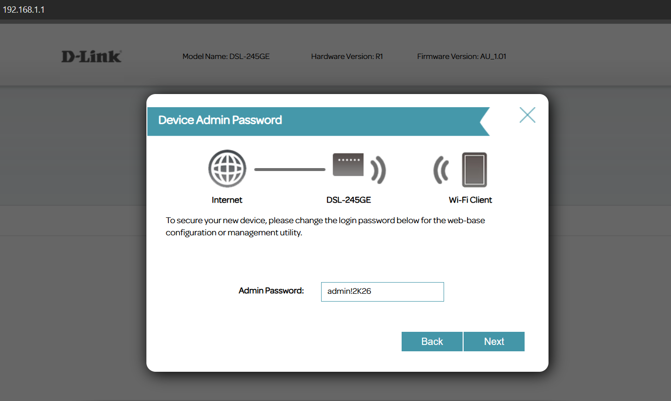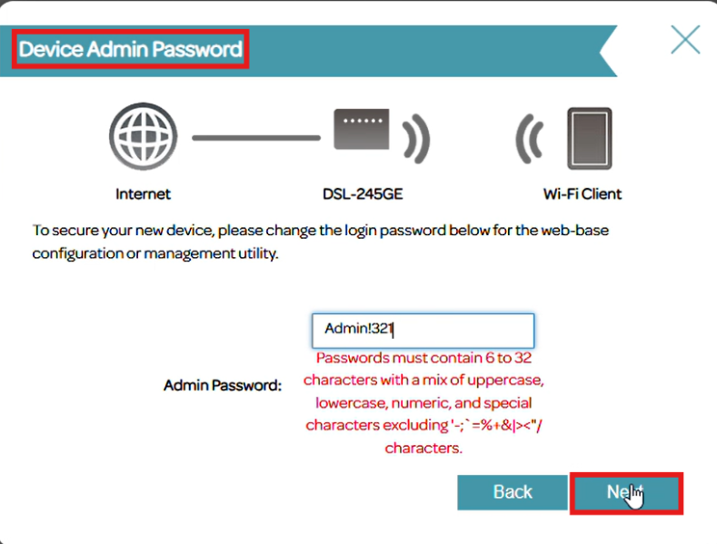 Under âDevice Admin Passwordâ, customer may keep or change the default password.