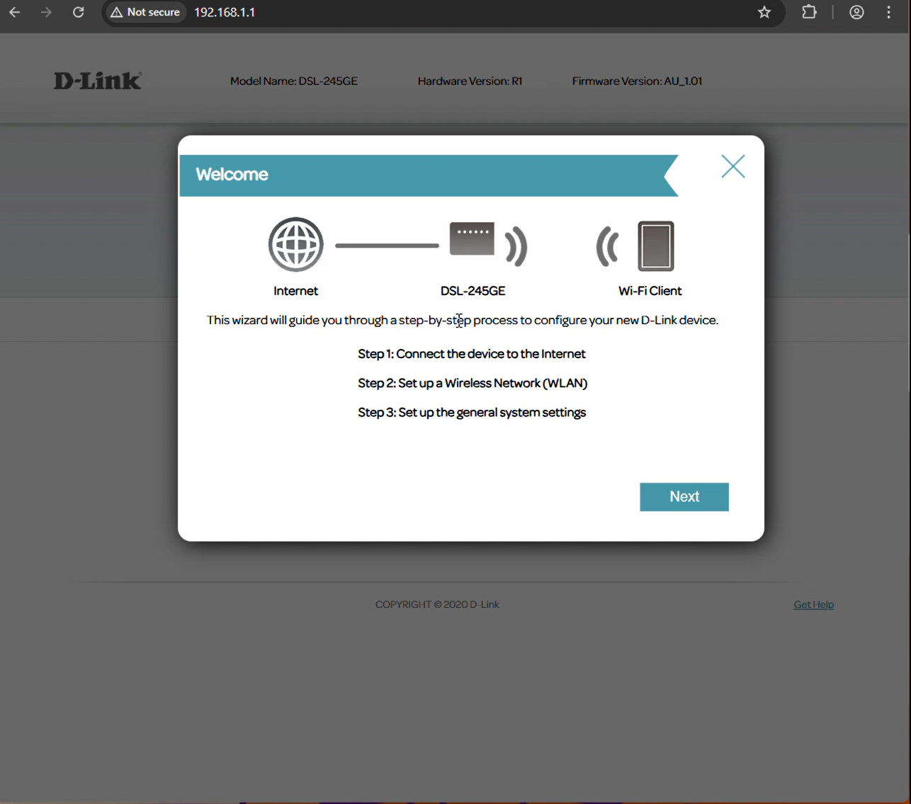 On your đ» device, open your internet browser (e.g. Chrome, Safari, Edge ), type http://192.168.1.1 on the address bar, and press enter.